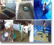 बगॅसचा किंवा गहू - तुरींच्या भुश्याचा १० ते २० से.मी. जाडीचा थर करावा. त्यावर तयार झालेले मिश्रण शिंपडावे. त्याचवेळी २५ ग्रॅम 'अ' जीवनसत्व व १ किलो खनिज मिश्रण मधून - मधून शिंपडावे. सर्व मिश्रण फावड्याने एकजीव करत रहावे. शक्यतो युरियाचे प्रमाण कमीत कमी असावे. त्यासाठी युरियाची टक्केवारी वजन करूनच ठरवावी. असे खाद्य तीन दिवस अर्धा किलो, नंतर तीन दिवस १ किलो व नंतर तीन दिवस २ किलो प्रतिदिन याप्रमाणे द्यावे. सुरुवातीला काही जनावरे हे खाद्य खात नाहीत; मात्र सवयीनंतर खातात. खाद्य रुचकर होण्यासाठी एखाद्या धान्याचा भरडा किंवा पेंडही मिसळता येते. हे खाद्य दुभत्या जनावरांना हिरव्या चार्याच्या अधिक प्रमाणाबरोबर थोडक्यात द्यावे. एक वर्षाच्या आतील वासरांना हे खाद्य देऊ नये. एकदा तयार केलेले खाद्य शक्यतो त्याच दिवशी दिले जाणे अपेक्षित आहे.